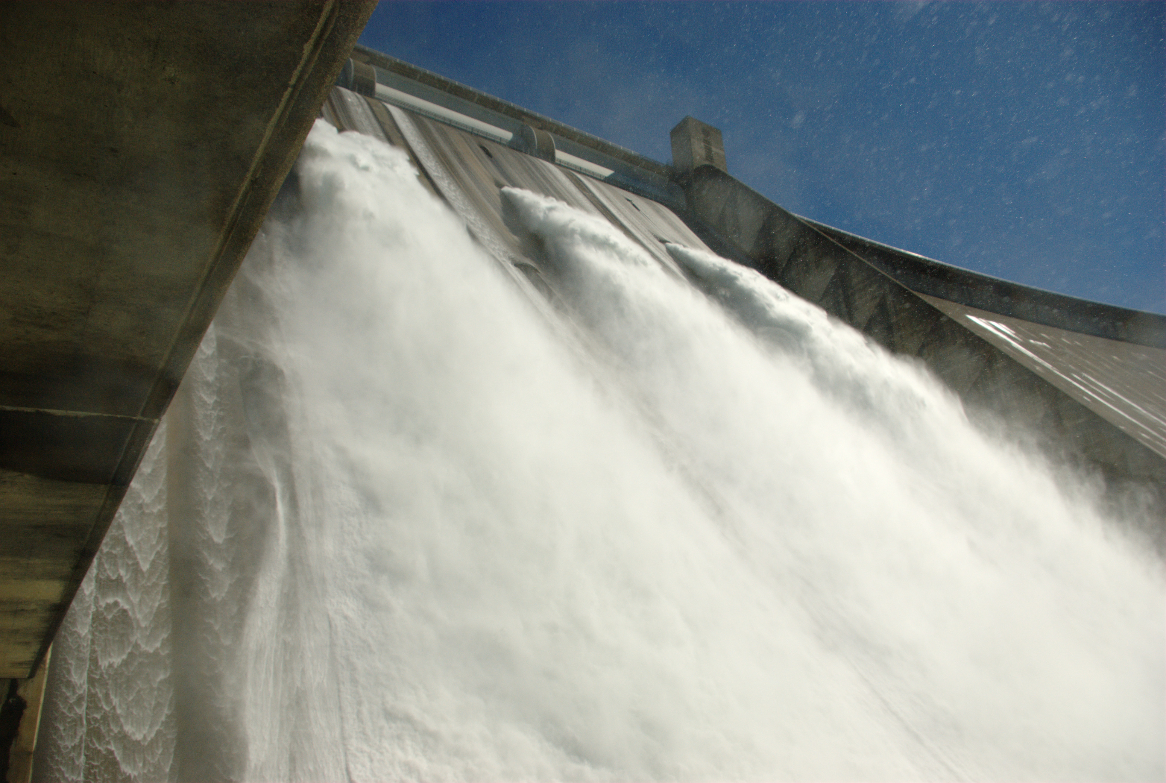 At the base of Shasta Dam. Note the haze visible in the upper right corner. This is mist on the camera lens from all the water.